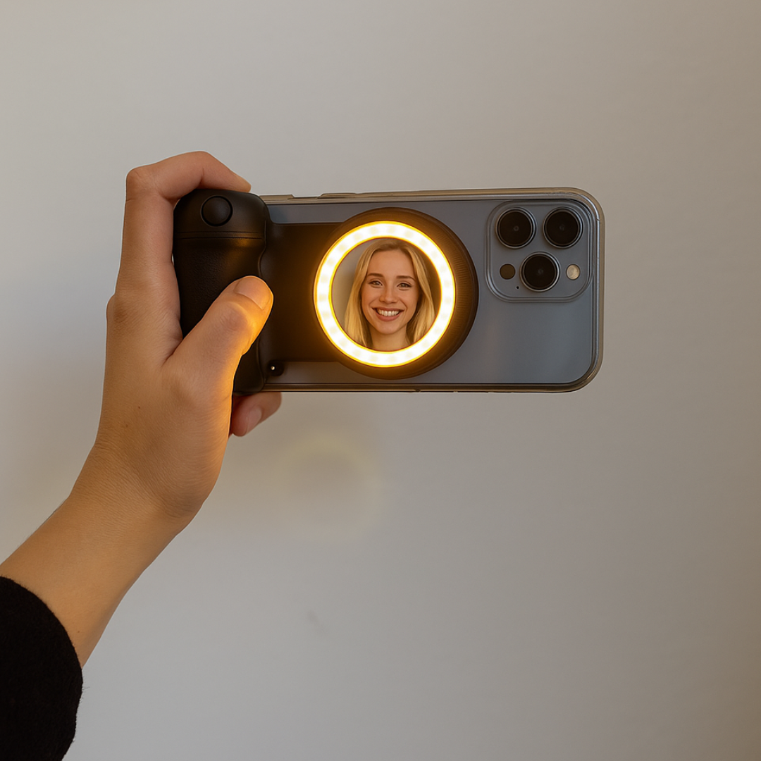 Sinds de Lumogrip maak ik stabiele selfies en productshots, koppelen via bluetooth ging in seconden.